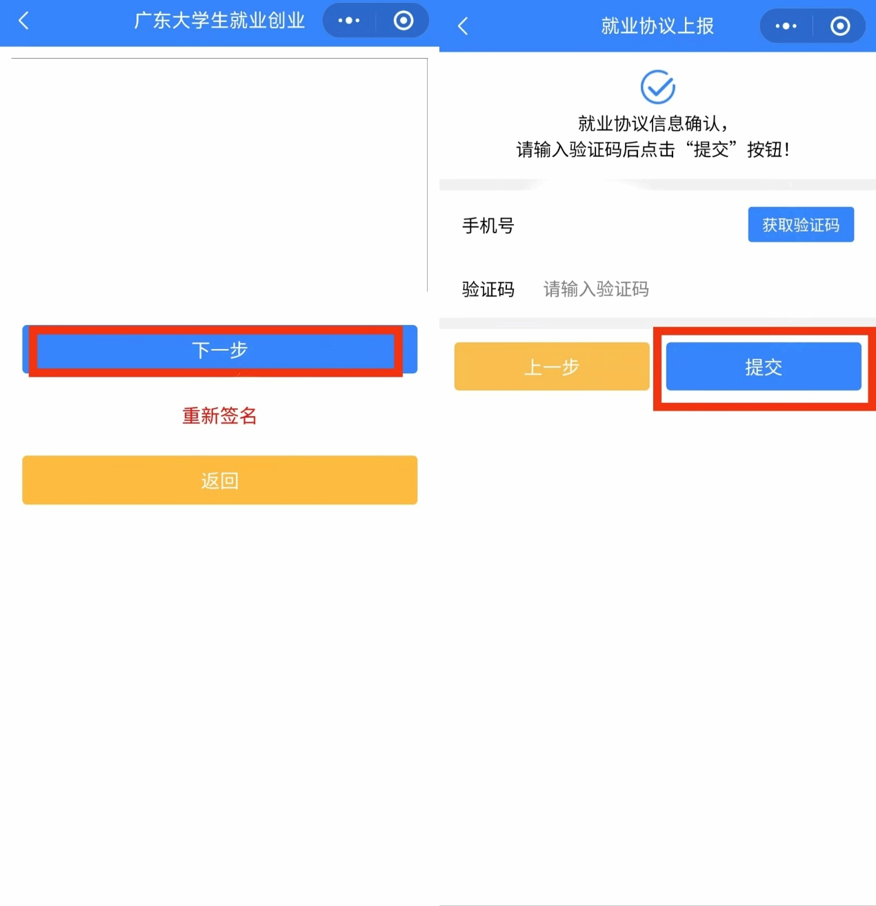 确认全部信息,进行签名确认。如有错误可点击“返回”到对应步骤中修改。确认无误后提交即完成就业协议书的申请。一旦学校审核后,毕业生和院校无法再修改信息,如需修改,请学生本人联系单位直接审核不通过退回学生直接修改。