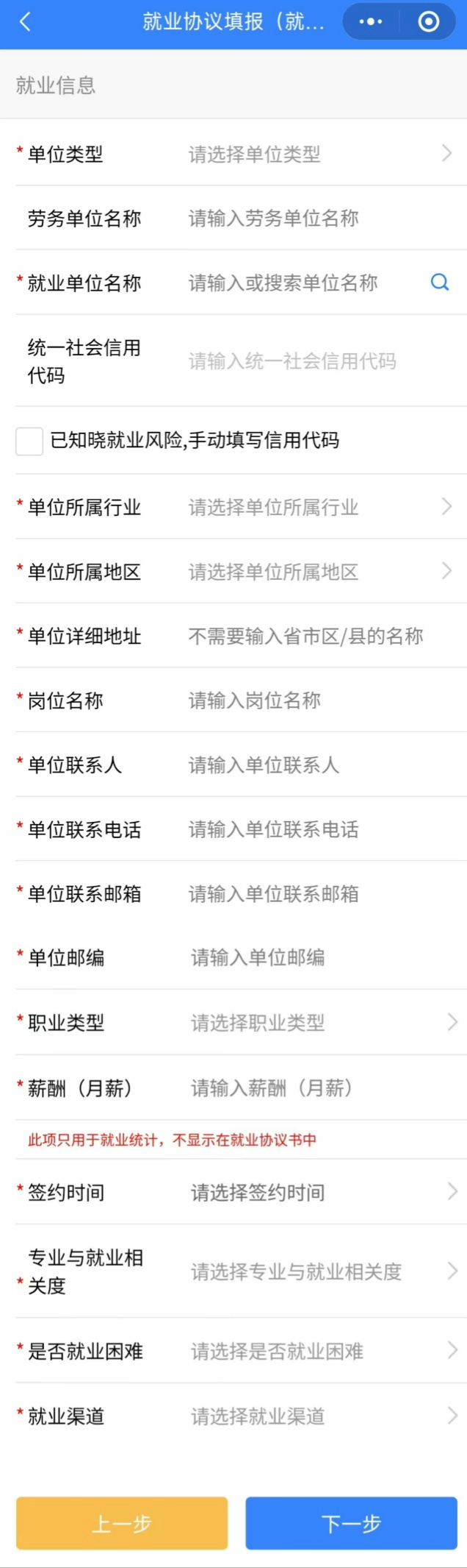 根据实际就业情况填写就业信息,填报前务必与签约单位确定以下各项内容后再填报: