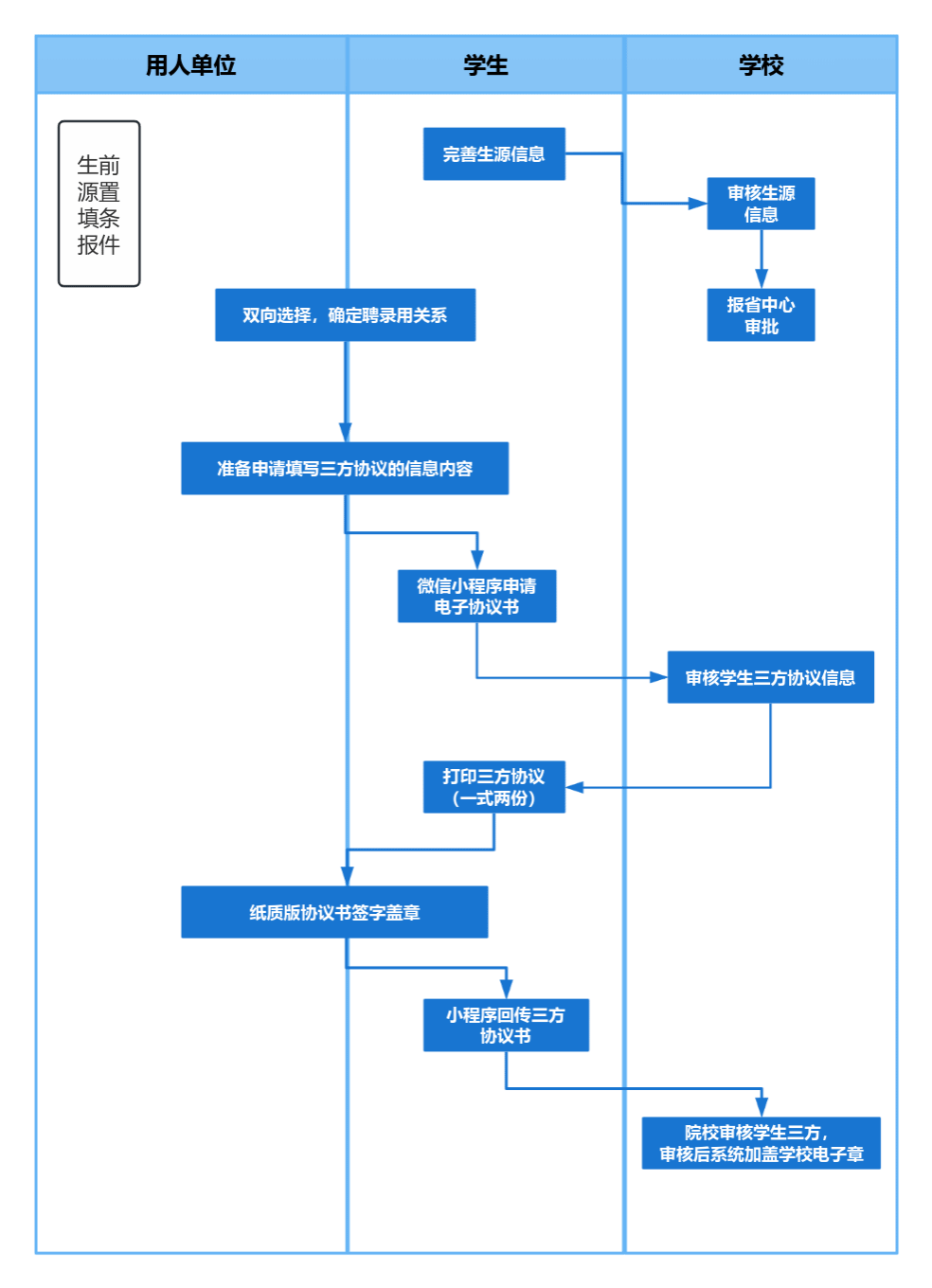 1. 毕业生在申请协议书时务必慎重考虑,是否已确定意向单位,双方约定事宜是否清晰。每人有且仅有一份三方协议,签约后必须取得原单位同意后方可解除,申请与新单位签订。